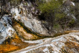 Wir sahen eine riesige Höhle mit blauem Wasser, Schlammtümpel mit kleinen und großen Blasen, wo manche mit ordentlich Druck rausgepresst werden und andere nur kleine Spritzer hochschießen und eine kleine Oase, die richtig zum Baden einlud. Dass das Wasser darin zu heiß war, erkannten wir aber am Sprudeln und dem Rinnsal, das davon wegführte, dampfte und beim Abkühlen Kristalle an seinen Rändern hinterließ.