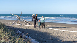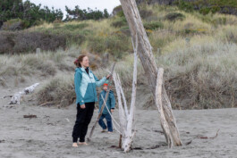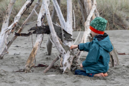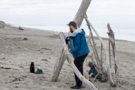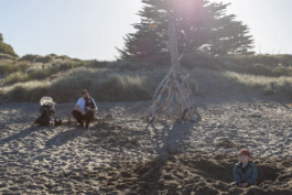 Unser Plan war heute: ab ans Meer! Und das haben wir auch geschafft. Sogar zweimal 😊 nach dem Frühstück sind wir direkt losgezogen, den kleinen Pfad hinterm Campingplatz entlang durchs Gebüsch. Hier und da gibt es ein paar Palmen, daneben riesige Bäume, bunte Blumen und Sträucher. Schon echt schön und anders hier. Auch der Strand hatte einen ganz anderen Charme. Überall lagen glattgespülte, weiße Stämme und Äste, einige bereits gestapelt und gestellt und damit natürlich Motivation pur, unsere eigene Strandbude zu bauen. Auf dem Weg zu einer geeigneten Stelle kamen wir an Möwen, Haiköpfen und Algen vorbei und bauten dann fleißig drauf los.